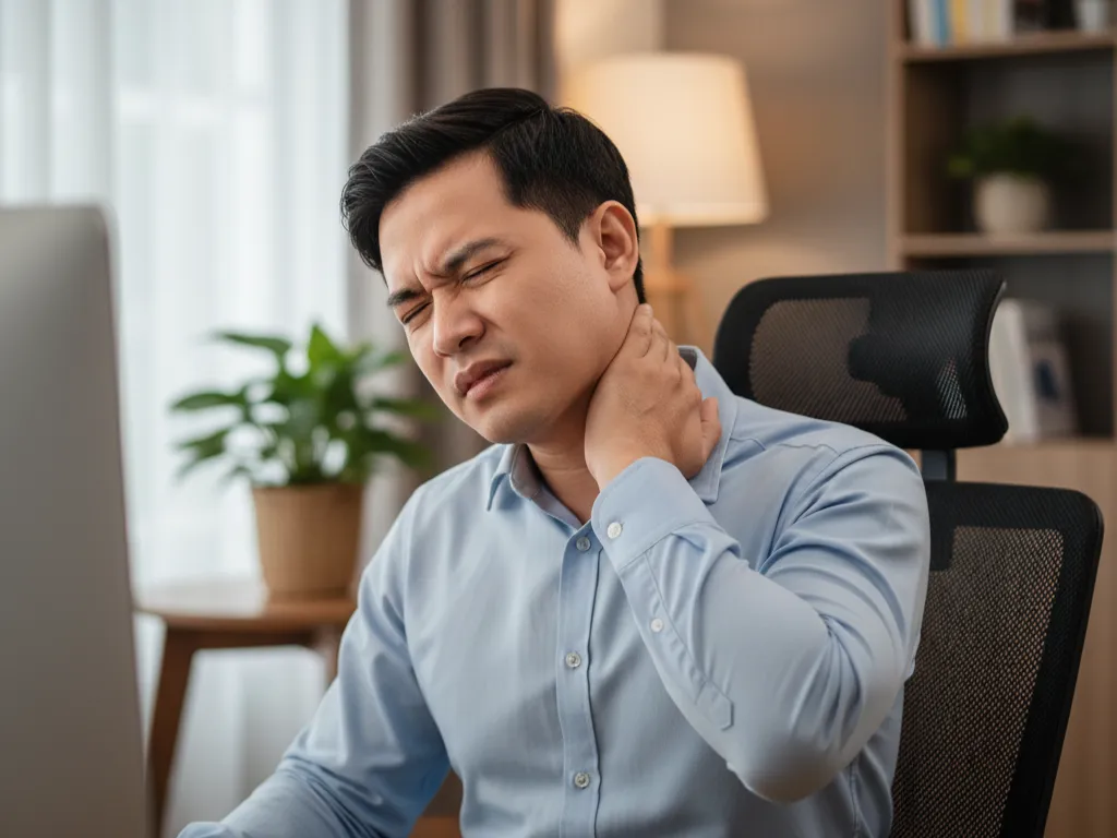 Vai gáy, cổ hoặc lưng đau cứng, khó chịu dù đã cố gắng thư giãn hay tập luyện.